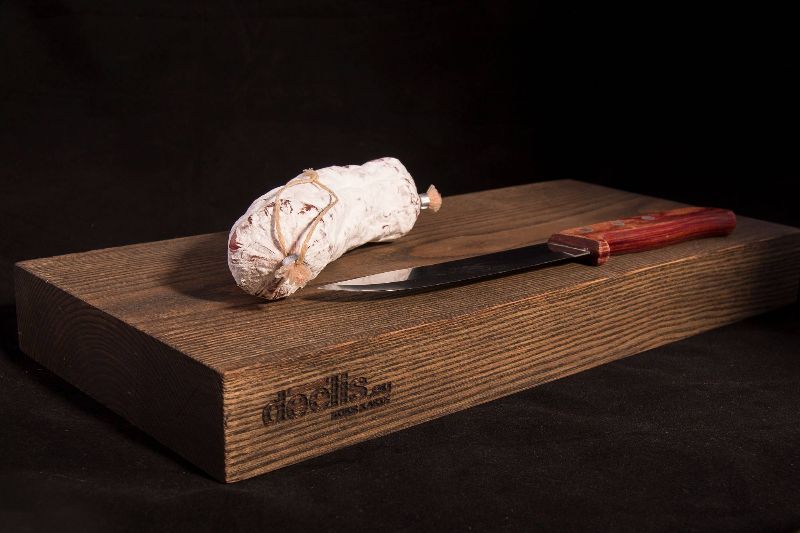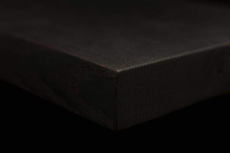 Ash tree board is burned until black and polished. After polish it is soaked with linen oil or bees wax. It is intended for use as serving table or design element, because knife can scratch black coat.